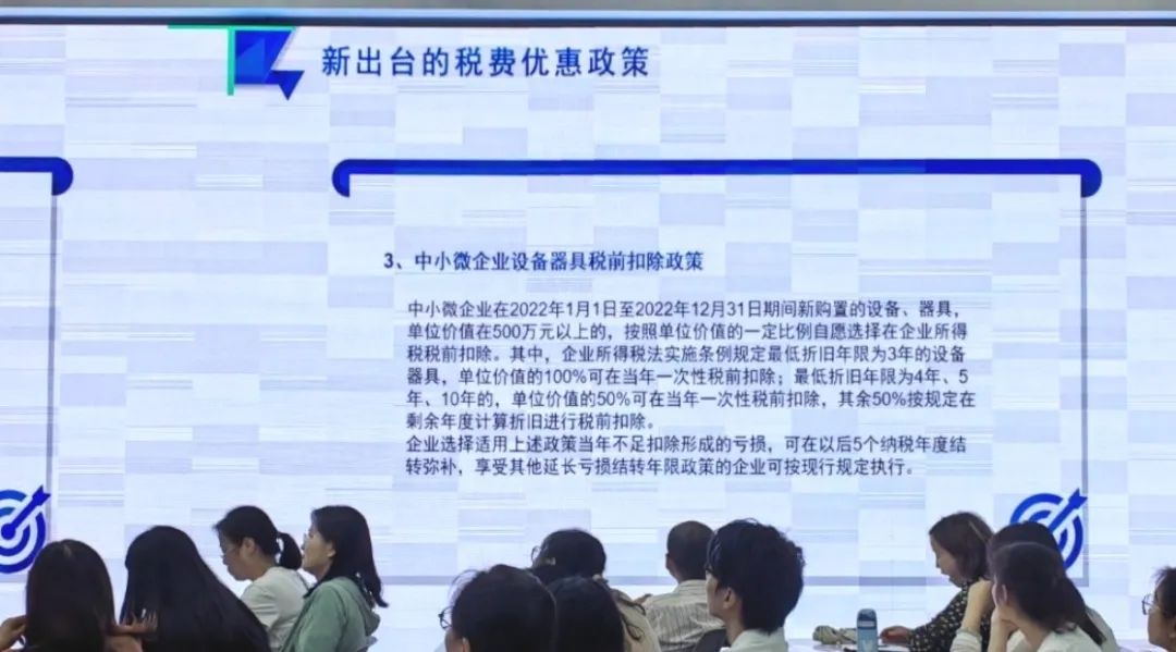 随后,主讲老师向大家解读了新出台的税费优惠政策,希望民营企业能够真正享受到国家出台的税费优惠政策,帮助企业长远健康发展。