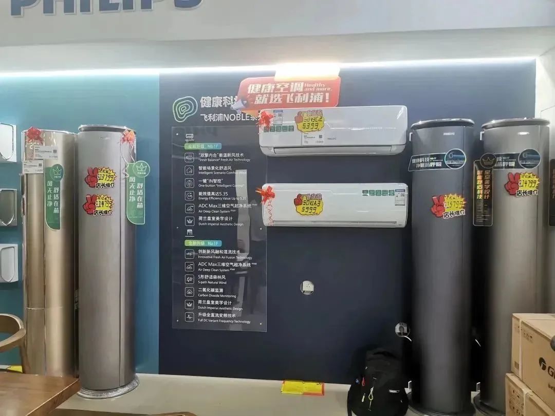 飞利浦全品类空调产品品类丰富,包括挂机、柜机、中央空调、水机二联供、工程机。