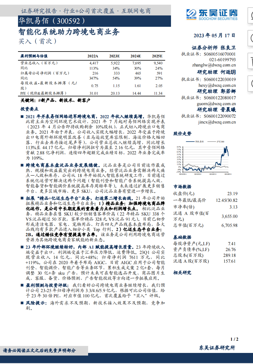 3、华凯易佰:跨境 B2C,亚马逊大卖,自研智能系统已获得效率提升。