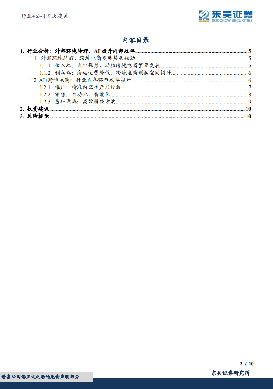 1、跨境电商行业外部环境转好,政策利好支持行业高速发展。
