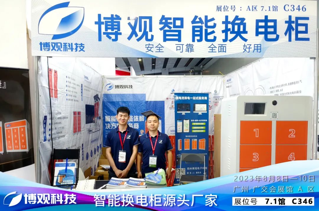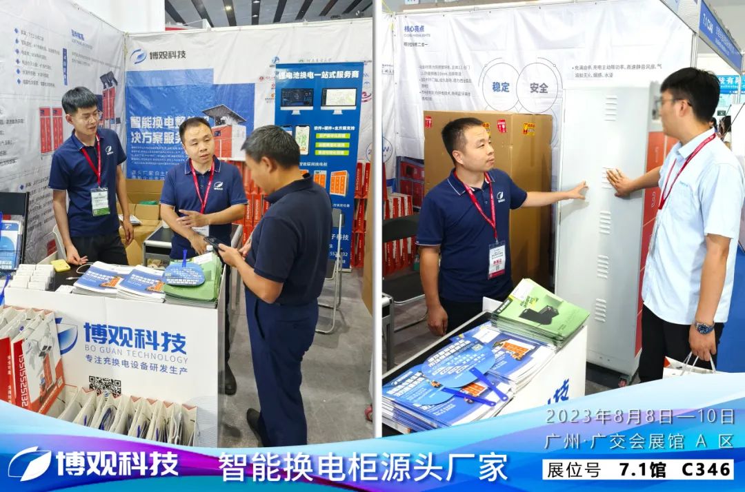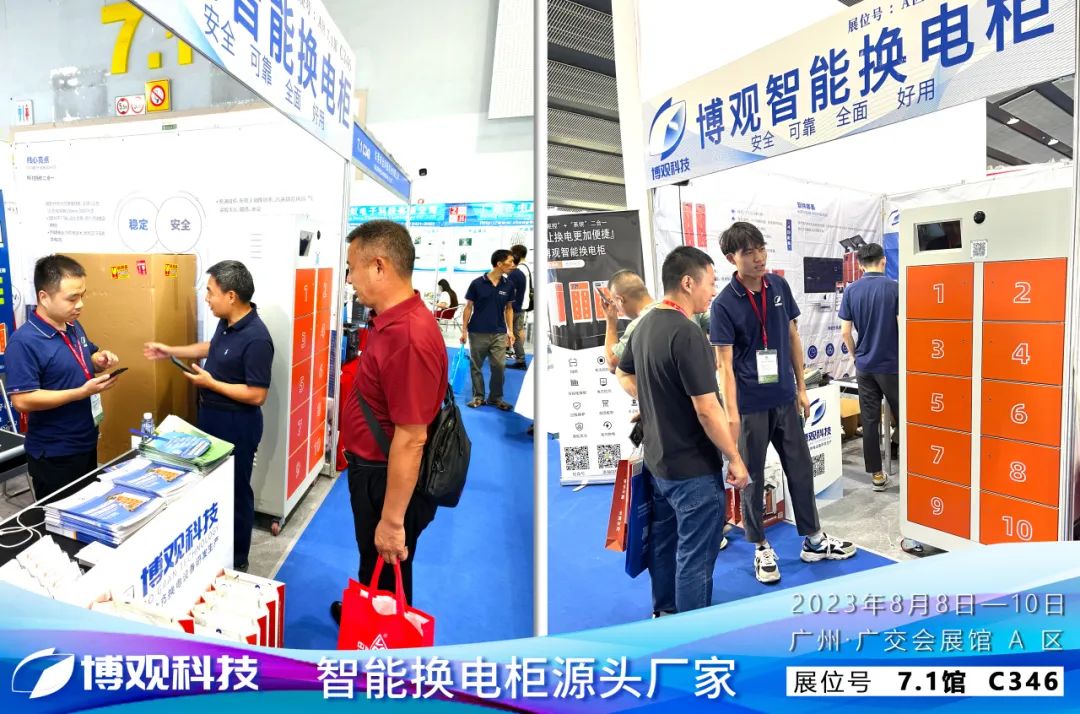 人潮涌动,火爆观展。博观科技作为智能换电柜源头厂家,以雄厚的产品研发、生产与销售实力,吸引了众多参展客户驻足,其车电分离、安全高效的充电方式,简单成熟的运营模式,广阔的市场前景,备受投资客户瞩目,吸引了现场众多客户的兴趣。