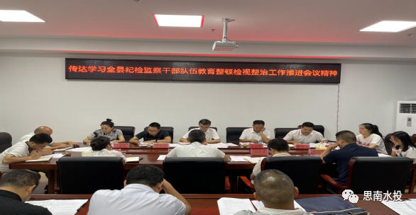8月23日,水投公司党委委员、纪委书记李秀山传达学习全县纪检监察干部队伍教育整顿检视整治工作推进会议精神。