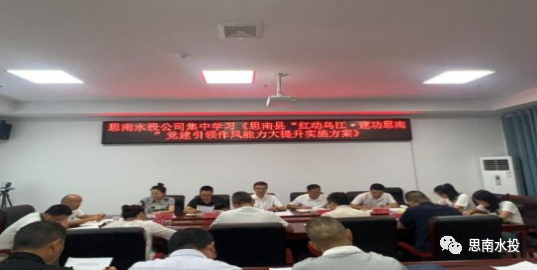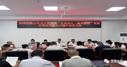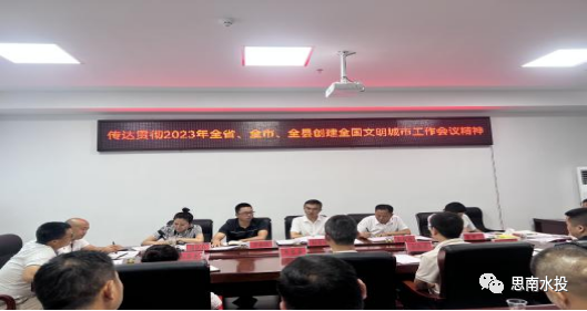 8月23日,水投公司党委书记、董事长杨昌世组织召开思南水务投资有限责任公司2023年第八次董事会、传达贯彻2023年全省、全市、全县创建全国文明城市工作会议精神、思南水投公司召开思南县“红动乌江·建功思南”党建引领作风能力大提升动员大会及思南水投公司集中学习《思南县“红动乌江·建功思南”》党建引领作风能力大提升实施方案,水投公司班子成员、各部门负责人及各子公司负责人参加会议。