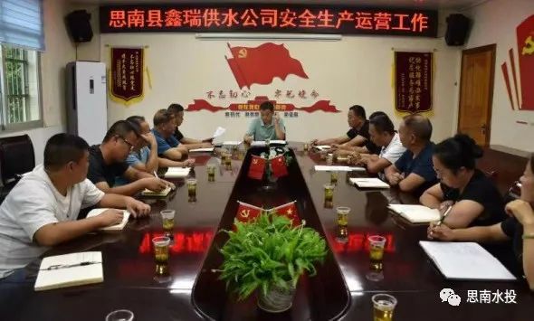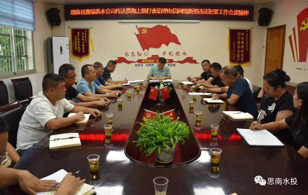 8月24日,县鑫瑞供水公司组织传达贯彻落实集团公司会议精神、组织召开安全生产运营工作会、传达贯彻上级打击治理电信网络新型违法犯罪工作会议精神。
