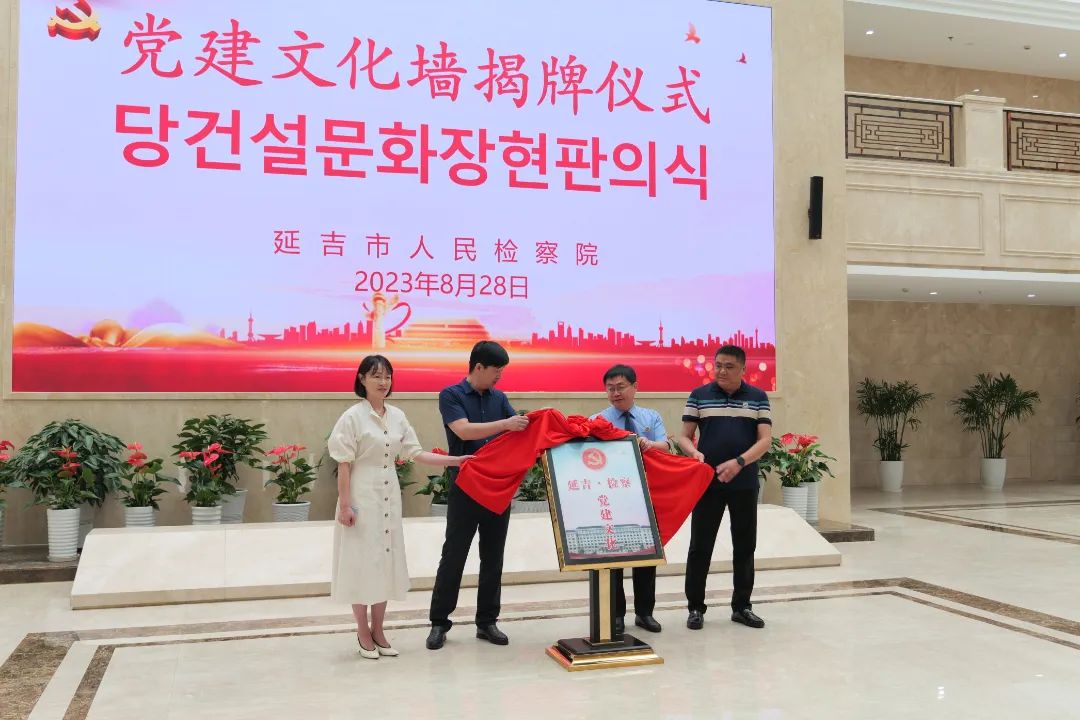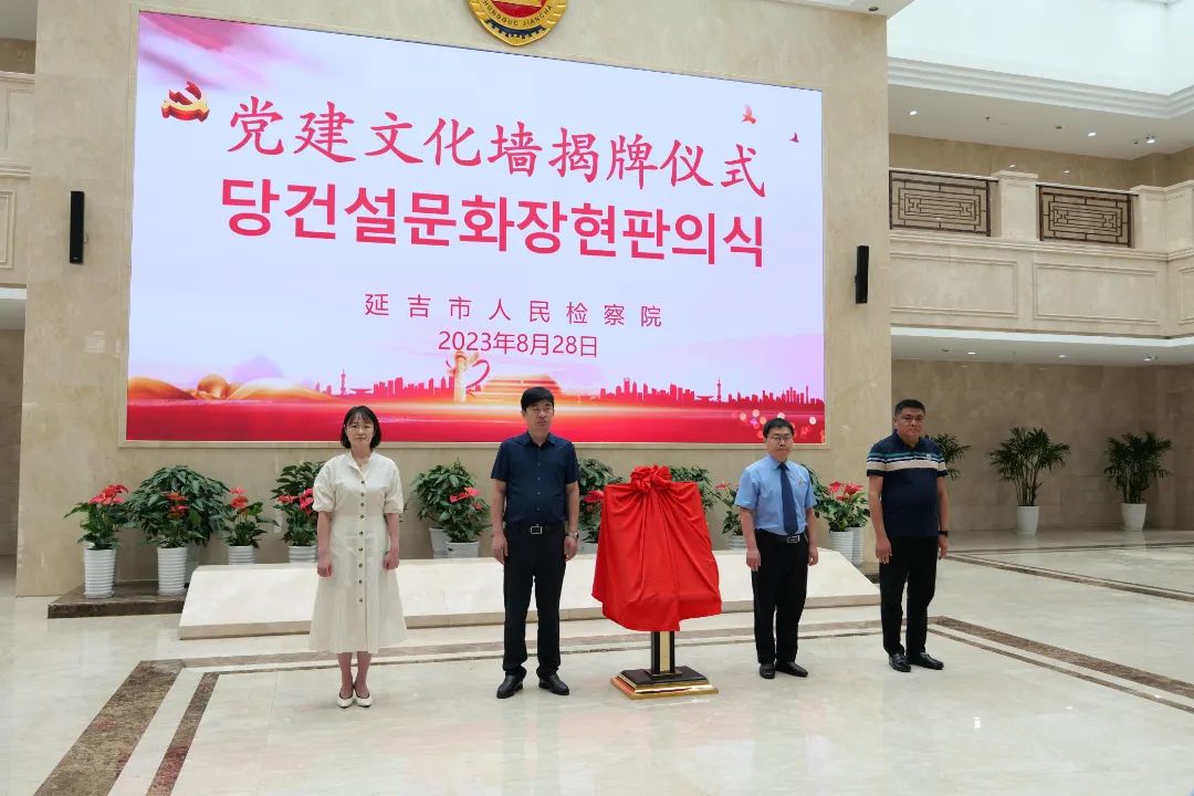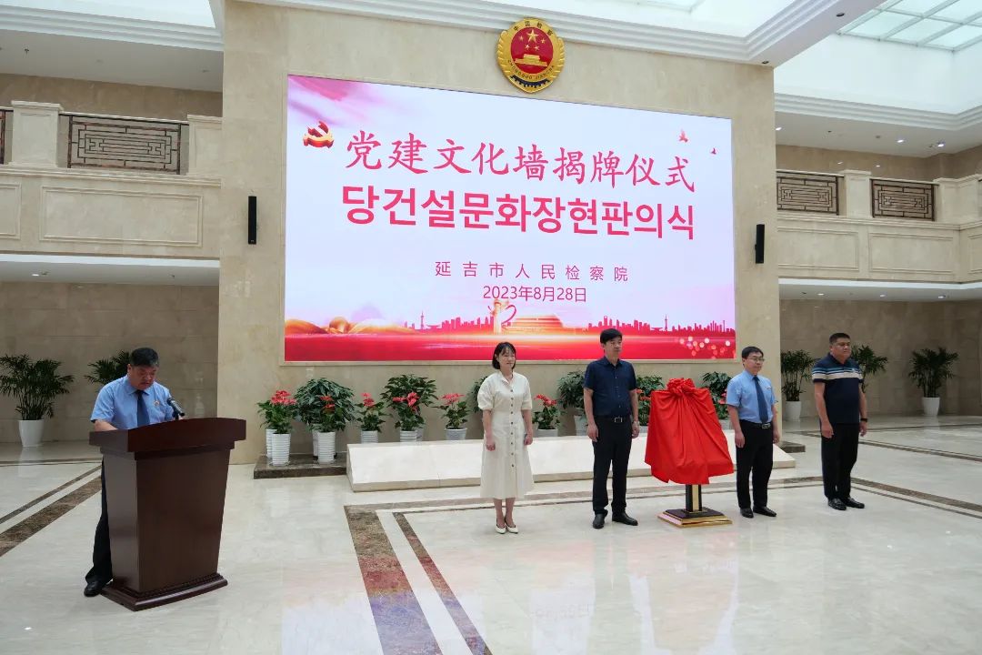 党组书记、检察长俞凤柱致辞并介绍党建文化墙的建设情况。他表示,延吉市人民检察院始终高度重视党建的引航作用,在积极推动过程中,用心构思、精心设计、反复研磨、精细施工,借助办公大楼的走廊墙面精心打造了以“守初心,创政治过硬的党建品牌”“筑公心,干本领过硬的检察业务”“暖人心,做担当尽责的正义检务”“凝匠心,建素质过硬的检察队伍”“葆清心,守律己修身的政治本色”为主题的机关党建文化墙。这既体现了检察文化的引导、激励、塑造功能,又全面展示了检察机关的理念、职责和使命。