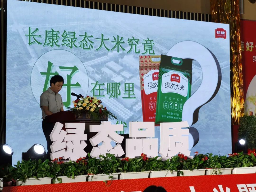 盛典伊始,长康集团董事长谭光辉先生发表致辞分享,向出席活动的各位领导和客商朋友致以了热烈的欢迎,表达了长康10万吨“绿态”大米项目建成投产过程的创新和拼搏,以及“绿态”大米对未来市场拓展空间和发展动力的坚定信心。