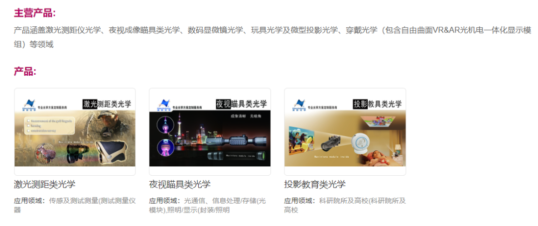 美景光学信息有限公司创立于2006年,是中国自由曲面光学和非球面光学领域的技术领先企业,致力于光学信息采集、光学信息还原等核心技术产品的研发、生产和销售,专业提供完整的光、机、电一体化“光核芯”解决方案。产品涵盖激光测距仪光学、夜视成像瞄具类光学、数码显微镜光学、玩具光学及微型投影光学、穿戴光学(包含自由曲面VR&AR光机电一体化显示模组)等领域。美景光学产品研发中心,专注于研发及设计以自由曲面光学、非球面光学为核心技术的光、机、电一体化产品,并为客户提供整体解决方案及技术咨询,全方位服务于订制客户。聚焦激光测距仪光学、夜视成像瞄具类光学等领域的关键技术研发、工艺优化和生产设备全链条整合。