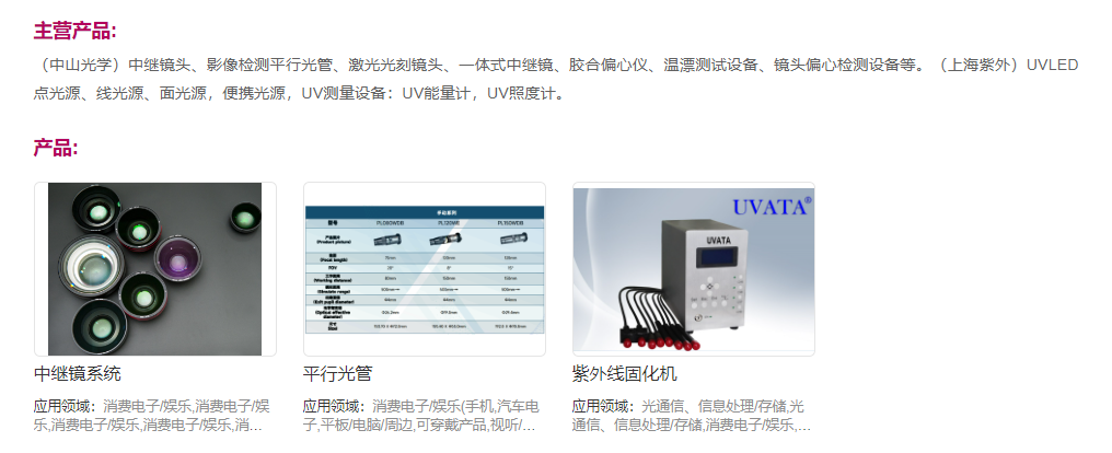 依瓦塔公司是一家专注光学测量镜头、光学测量仪器与紫外光源解决方案的领先制造商。主营产品:(中山光学)中继镜头、影像检测平行光管、激光光刻镜头、一体式中继镜、胶合偏心仪、温漂测试设备、镜头偏心检测设备等。(上海紫外)UVLED点光源、线光源、面光源,便携光源,UV测量设备:UV能量计,UV照度计。
