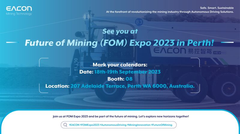 2023年珀斯未来矿业博览会(Future of Mining)旨在将决策者、解决方案提供商、矿业高管以及资源价值链各环节的关键利益相关者聚集在一个平台上进行“零伤害、零排放”方面的前沿探讨交流。易控智驾代表中国领先的矿区无人驾驶技术方案及产品提供商,将在FOM活动现场进行展示。