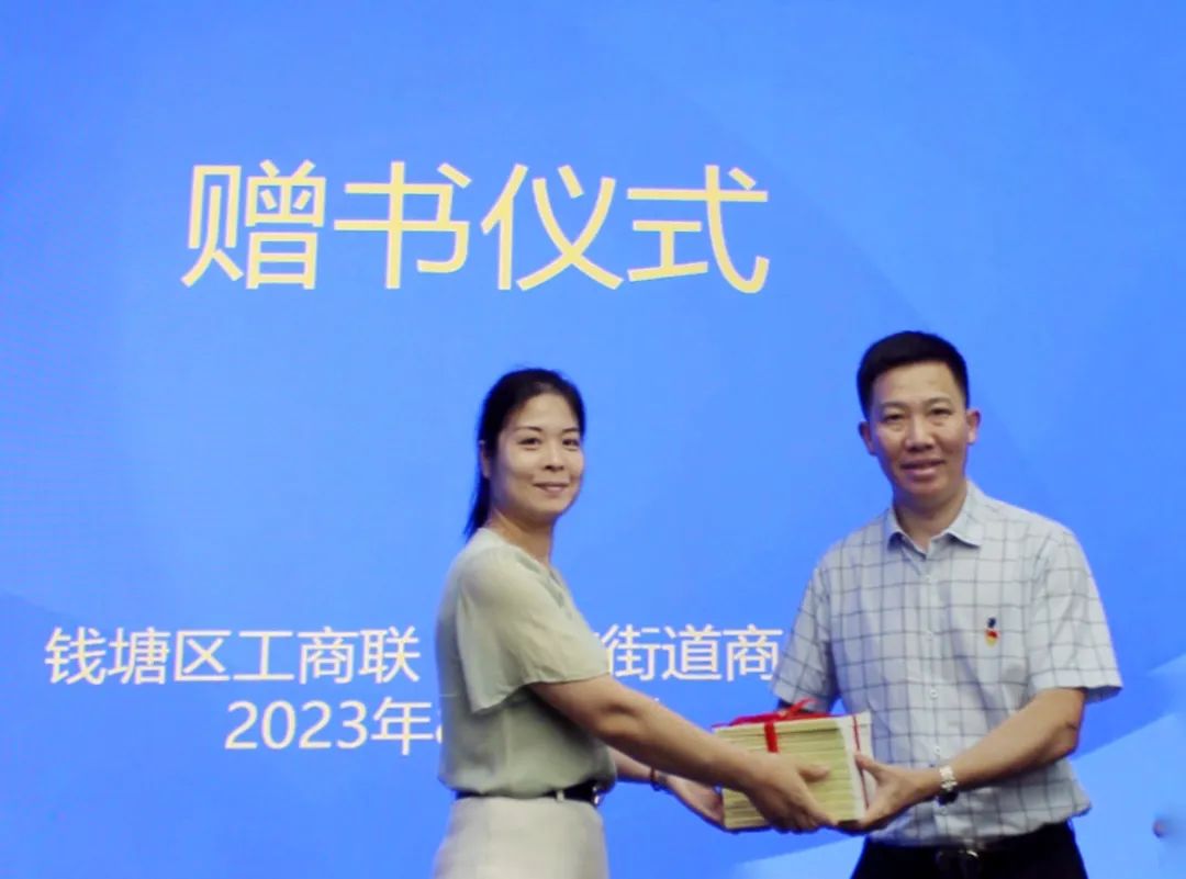 区工商联秘书长封金东给在座的各位赠送了书籍《习近平新时代中国特色社会主义思想学习纲要 》。