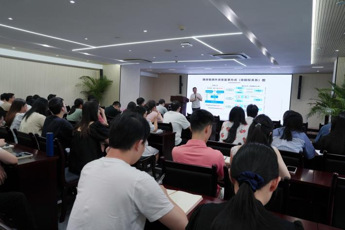 举办外派董监事管理专题培训会,邀请中国人民大学经济学博士、浙江大学法学院硕士研究生导师尤挺辉授课。会议由党委委员、副总经理郭英姿主持,集团本部及一级子公司全体干部员工、二级子公司中层及以上干部参加。