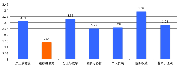 可以看出这是一家组织凝聚力偏低,但是组织权威又十分突出的企业,由此可以断定这是一家看重领导权威等级,但是人心离散的企业,问题出在领导力没有落地。