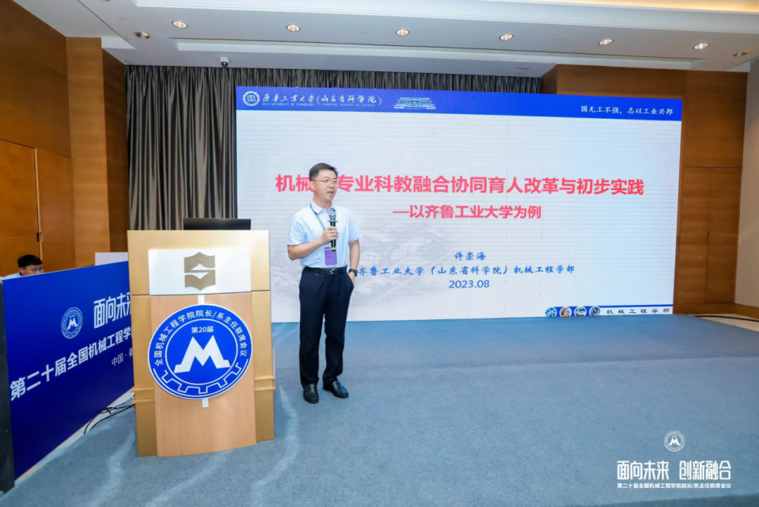 学部主任许崇海教授以“机械类专业科教融合协同育人改革与初步实践—以齐鲁工业大学为例”为题作了大会邀请报告,向与会者介绍了学部充分发挥科教融合优势,围绕建设国内一流、国际有影响的应用研究型大学的目标,构建了“产学研用”一体化、全链条的人才培养模式。学部的机械类专业科教融合协同育人模式、创新方法及成效受到国内众多院校的关注和认可,进一步提升了学部在全国机械学科领域的知名度和影响力。