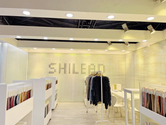 今年展位一如既往的以玻璃为主体,让油漆的范围减少一些,也是夏利达为了减少来访客户闻到油漆味的机会,减少了油漆的工序,也减少了化学物质的使用,呼应到夏利达染厂环保的理念。