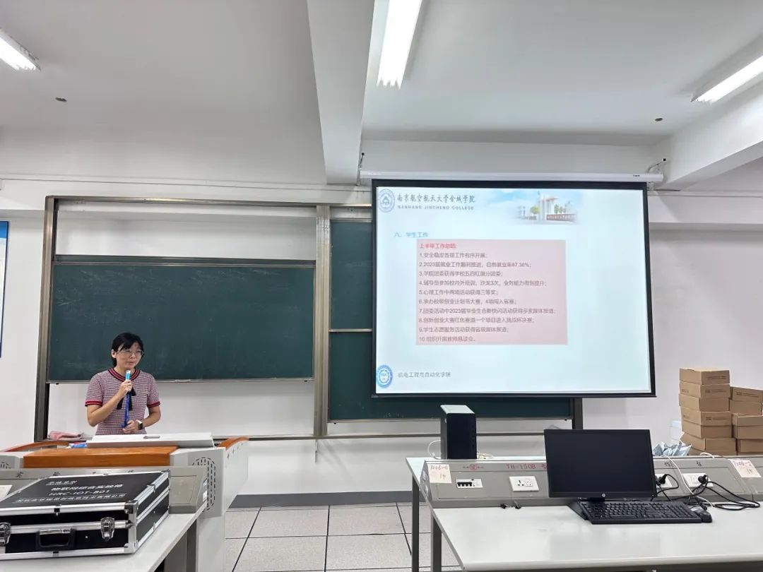 党总支副书记汪芳介绍了上学期学生工作的开展情况,指出应加强辅导员队伍与教师队伍的联系,在关键任务上保持信息的流通,并强化班主任在学生管理中的作用,协同保障好学生的生活、学习和就业。