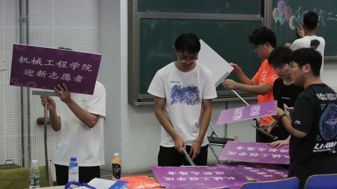 8月28日,经过上午九点开始的培训大会后,我们在下午一点正式开始了我们的前期准备工作。我们主要需要布置机械楼106教室和体育馆两个场所。在机械楼106教室,我们进行了板报的绘制,详细划分了各个班级收发材料和物资的区域,并摆放了班级立牌。在体育馆,志愿者们认真细致的布置报到场所。