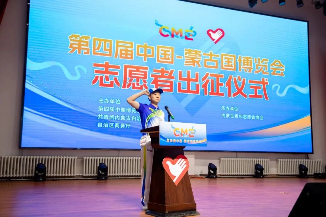 全体志愿者庄严宣誓,将以专业的技能、认真的态度、良好的状态,向与会嘉宾提供最优质的服务,向全世界展示好内蒙古青年的风采,展示好内蒙古青年志愿者这张最亮丽的“名片”。