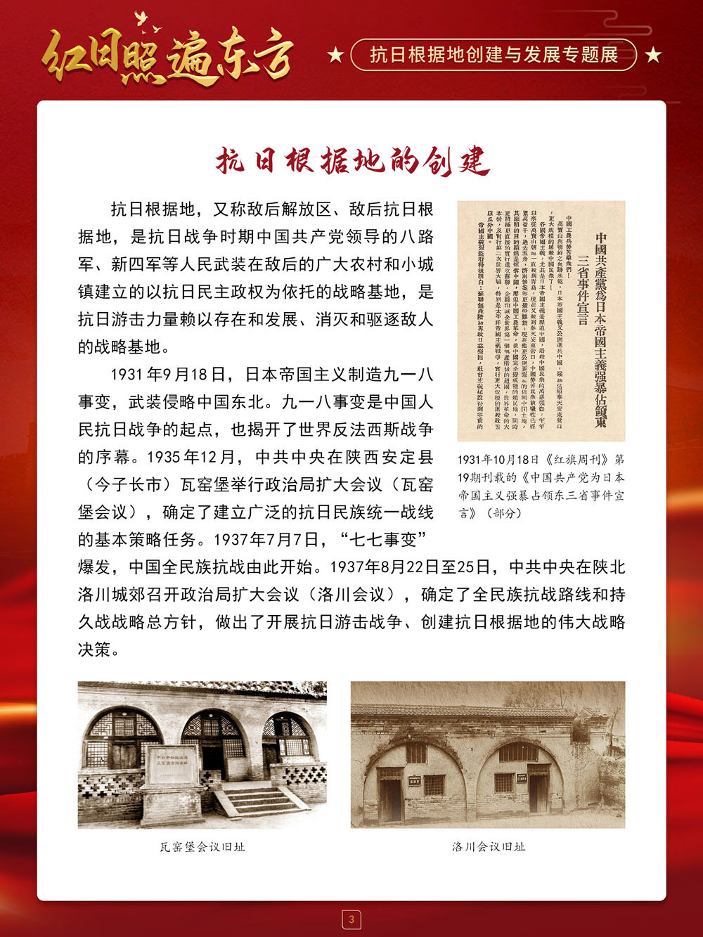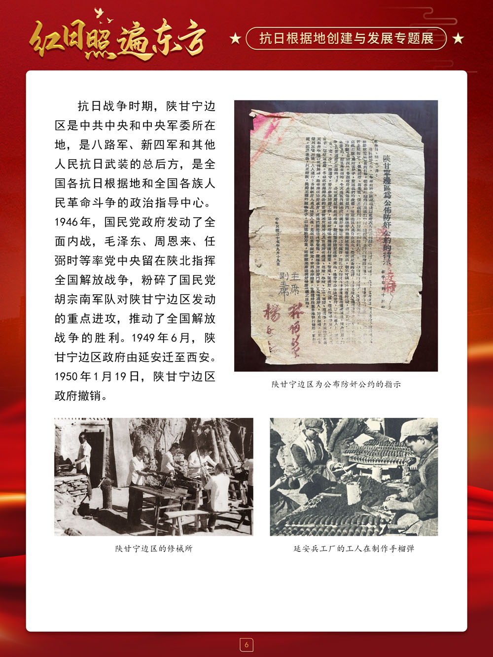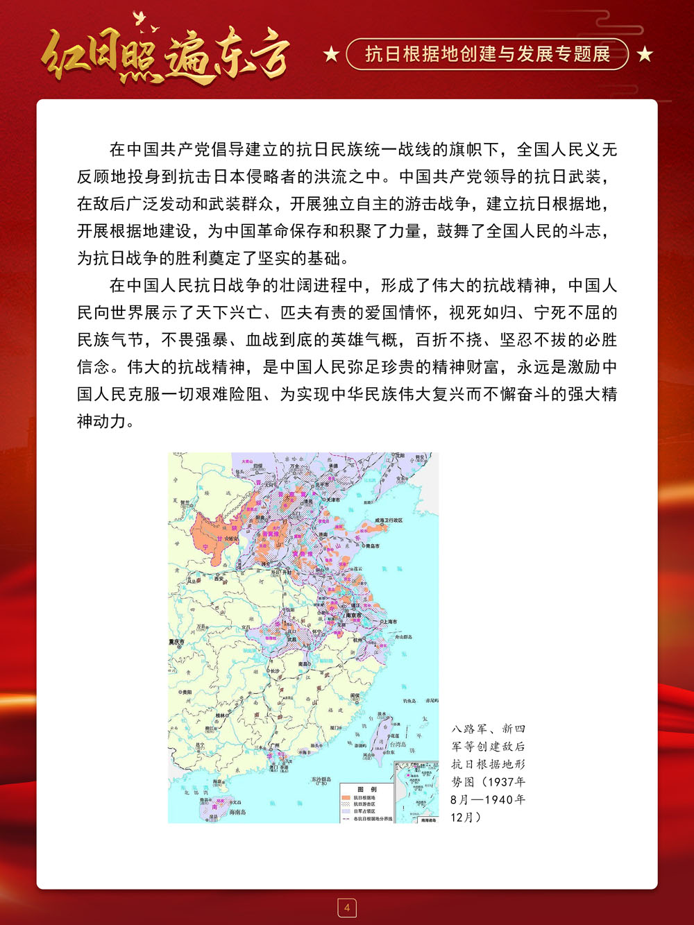 值此中国抗日战争胜利纪念日来临之际,请跟随我们的展览一起回顾那血与火的风云岁月,盘点那些在艰苦卓绝的斗争中建立起来的抗日根据地及其政治、经济和文化建设,弘扬抗战精神,赓续红色血脉,在新时代,继续朝着中华民族伟大复兴的中国梦奋勇前进!