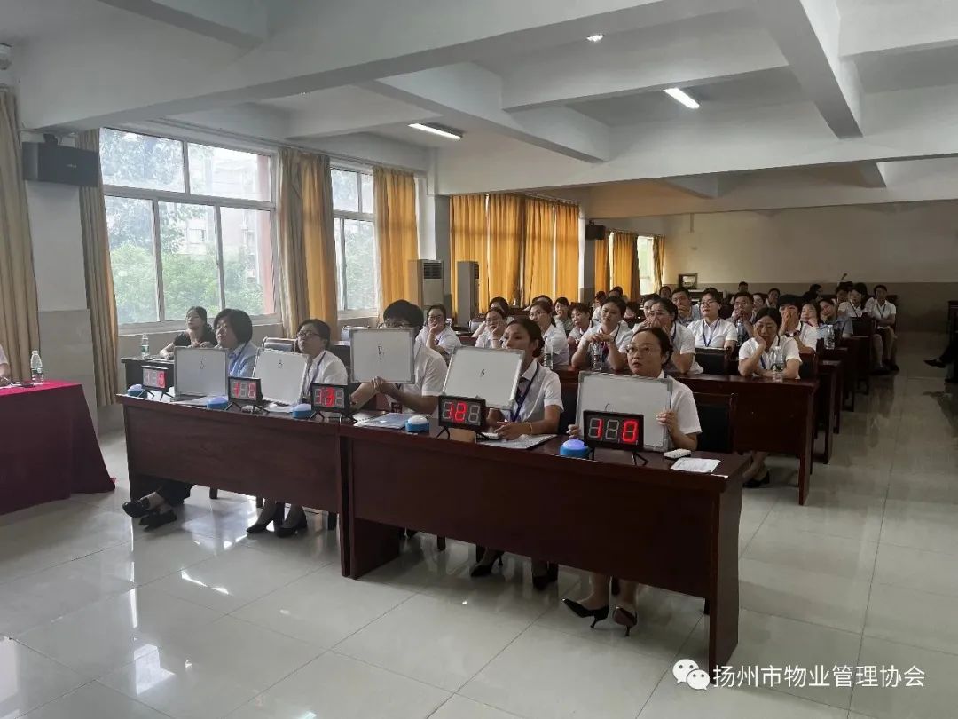 据主办方介绍,本次友谊赛是本着扬泰两市友好交流、互相学习、共同提高的目的而举行的比赛,两市旨在通过大赛来选拔和培养物业管理人才,从参赛者中选出一批“能工巧匠”参加明年的省技能竞赛,在更高的竞技舞台上拼搏、展示两市物业人的风采。为确保本次竞赛的顺利进行,赛前两地物业行业协会组建了竞赛组委会,制定了详尽的筹办计划,精心确定竞赛的各个环节,制定公平公正的执裁纪律,精挑严选裁判人员,并根据场地条件细致考量竞赛题目和竞赛流程设置。本次友谊赛参赛选手分两类,其中物业管理员117名,扬州50人,泰州67人;电工参赛选手80名,扬州37人,泰州43人。比赛参照省物业行业职业技能竞赛的相关规则和要求进行。其中物管员依次参加理论考试、案例分析、抢答和演讲四轮比赛,每一轮选手实行淘汰择优后进入下一轮比赛。电工选手全部参加了理论和实操比赛。两天的比赛过程中,全体选手沉着、认真对待每一项赛程,以良好的心理素质和精神风貌,让扬泰两市物业人赛出了友谊、赛出了水平、赛出了风格、赛出了境界。