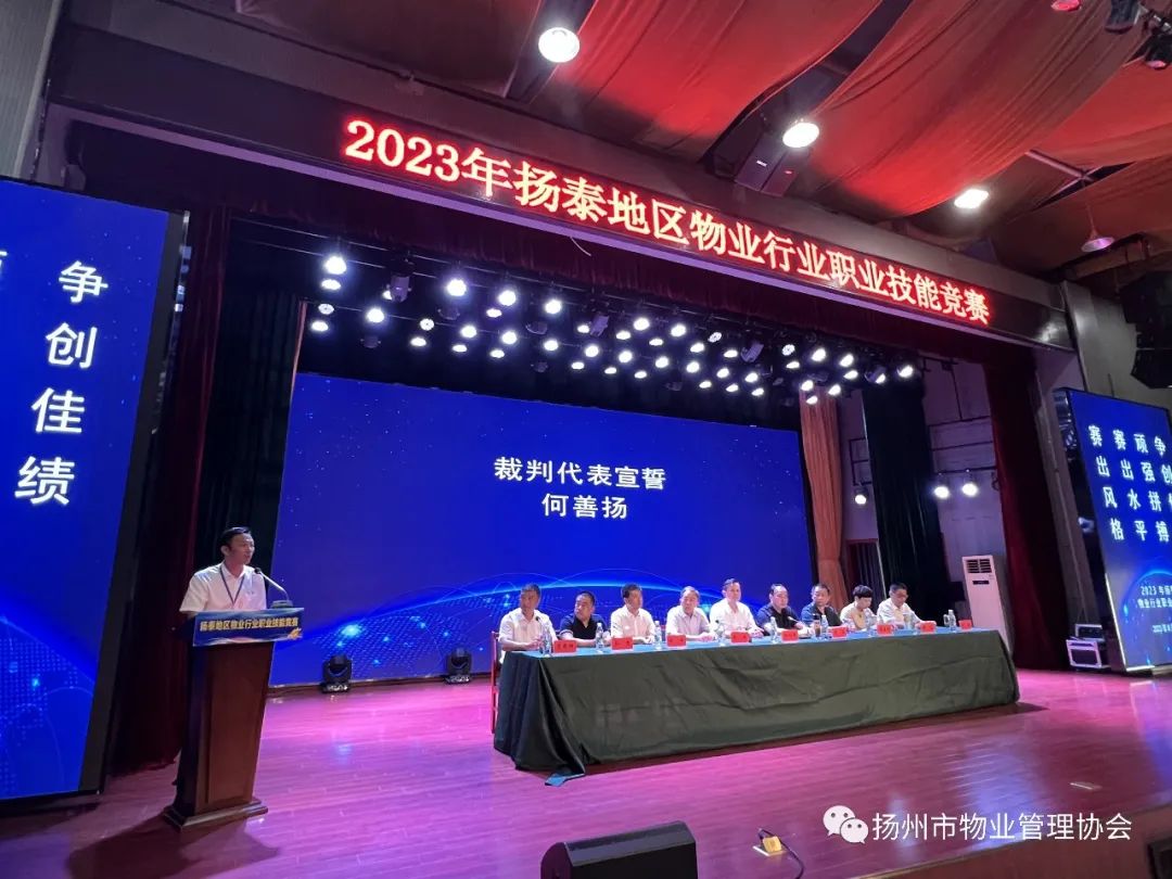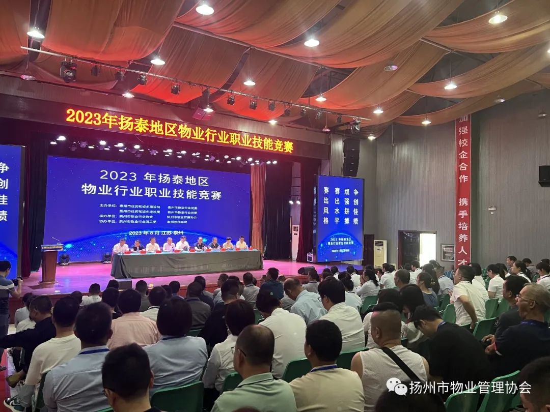 8月26日至27日,由泰州、扬州两市住建局联合主办,两市物业协会联合承办的“2023年扬泰地区物业行业物业管理员、电工职业技能友谊赛”在泰州技师学院成功举办,来自两地物业服务行业的197名选手参加了比赛。扬州市住房和城乡建设局分管领导顾健、泰州市住房事业发展中心主任杨坤出席大赛开幕式并致辞。泰州技师学院院长陆剑锋、扬州市住房和城乡建设局物业管理处处长聂春扬、泰州市住房和城乡建设局工会工作委员会主任陈博、扬州市物业管理中心主任陈艺、泰州市住房事业发展中心物业服务科科长郭亮、扬州市物业管理协会会长刘铁、泰州市物业行业协会会长吴朝阳等参加开幕式。