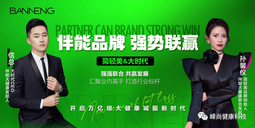 在企业寻求合作,品牌寻求生长的大环境下,嵘尚健康科技简轻美品牌联合大时代,洛卡滋,国和堂,姜多多,安恒堂,凰上凰,伽密时代等38个品牌方联合发起伴能大健康减脂品牌,成立品牌商业联盟,抢占万亿蓝海市场!联盟采用百业云连锁的商业模式,以拓、留、锁、升的商业模型赋能门店。