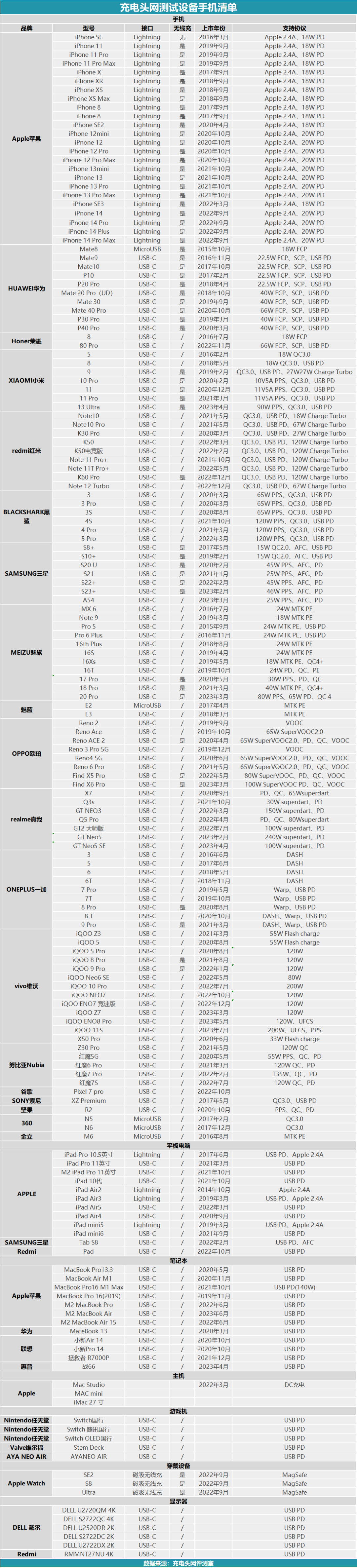 目前充电头网已投入巨资购入了上百款涵盖各品牌的手机、平板、笔记本等设备。