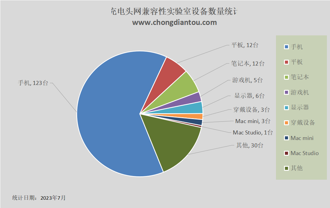 充电头网兼容性实验室位于中国深圳,拥有多达163个设备,并且每个月都会进行设备更新,以丰富的设备储藏量来满足不同产品的兼容性测试需求,用强大的数据支撑来保证我们测试的产品的权威性。