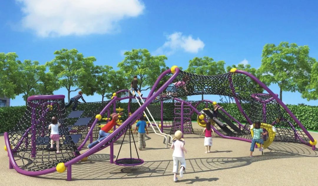 绳网材质具有强度高、柔韧度适中、坚固耐用、性价比高等优点,常应用于攀爬网等儿童素质拓展乐园的设计中。攀爬网由钢管结构加六股航海钢丝绳编织而成,是一种很热门的游乐项目,广泛用于公园、小区、游乐场、幼儿园等场景。