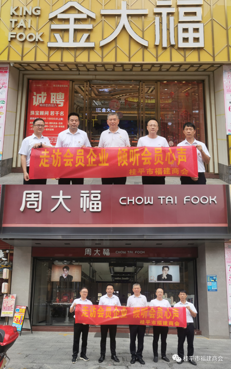 商会值班组领导先后走访了桂平市康骏陶瓷、闽晖卫浴灯饰,桂平市金大福珠宝店、周大福珠宝店等会员企业,认真了解会员企业经营情况,未来发展规划,就企业目前遇到的困难,进行了深入的交流,共同探讨解决思路。执行会长沈清龙表示,商会作为服务企业的平台,希望大家能积极参加商会活动,商会将全力支持企业发展,持续提升商会服务质量,竭尽所能为企业做好服务,助力会员企业更高质量发展。
