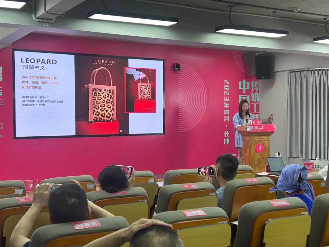昌妮女士分享了她对传统工艺的解构与跳跃性地创作。带领团队深度挖掘蕴含在湘绣中的历史、文化、工艺与审美价值,用当代设计为传统工艺赋能、蓄势,落地为一个个实用性高且兼具美观的湘绣产品,是她一直以来秉承的经营理念。