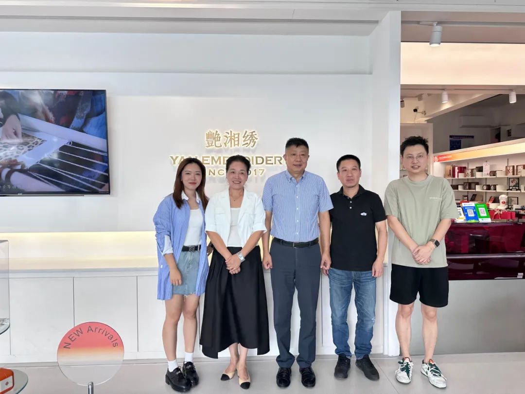 李艳刺绣艺术馆创始人李艳女士、李艳刺绣艺术馆主理人昌妮女士、湖南省升杉湘绣有限公司总经理刘晋宇先生热情接待并讲解。