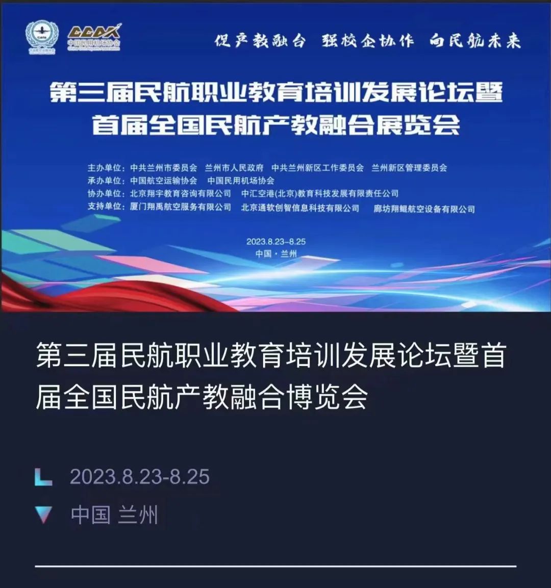 8月24日-25日,第三届民航职业教育培训发展论坛暨首届全国民航产教融合展览会在甘肃兰州举办。中航未来受邀,与近600位来自民航行业管理部门、地方政府、航空公司、院校、协会的领导、专家和企业家,共同参加这一行业盛会。