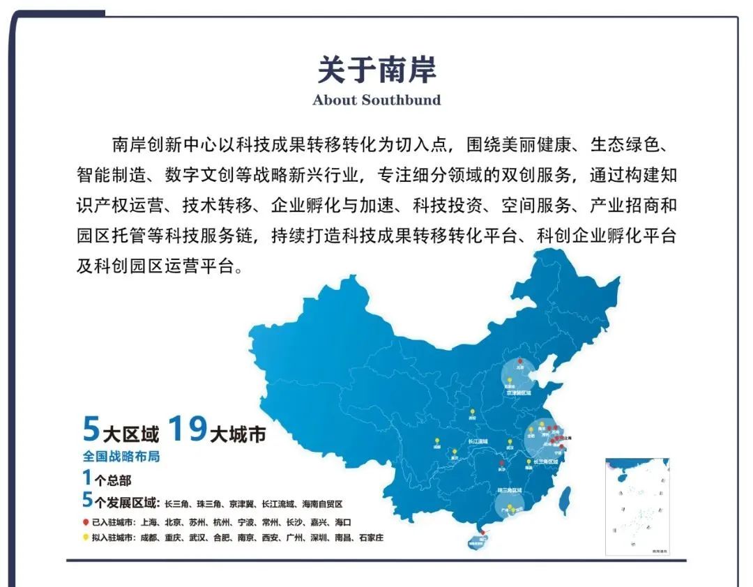 南岸创新中心定位于全球科创事业服务商,精心转化每一项成果,用心培育每一家企业,致力构建新型科创生态系统。
