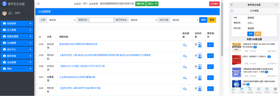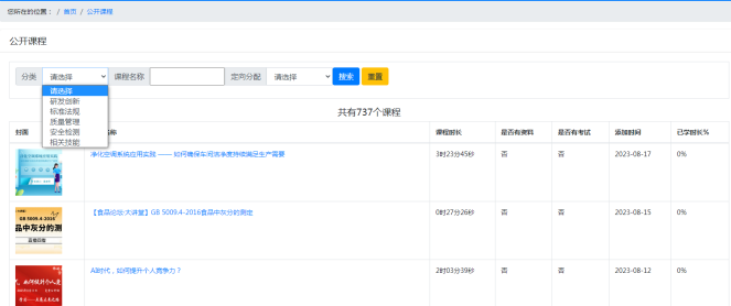 数百门食品课程资源,定向化分配管理。