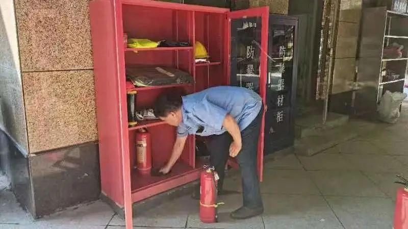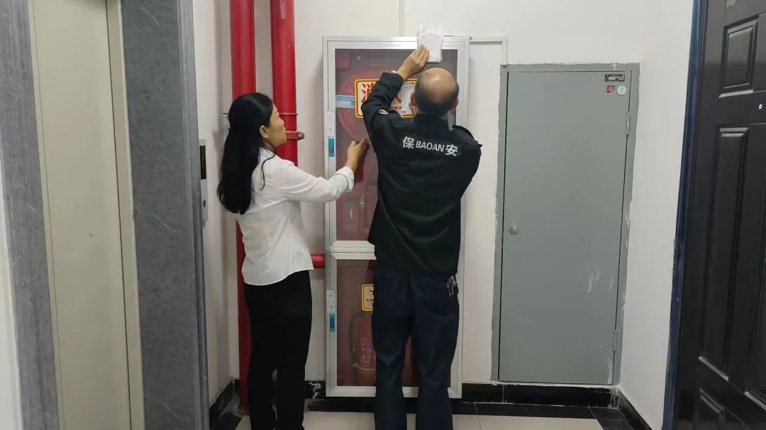 1.物业公司巡查小区楼层电表箱、微型消防站及消防栓等设施,排查安全隐患。