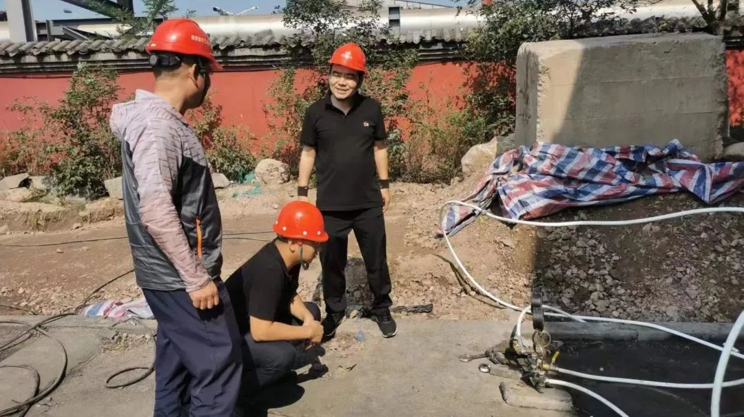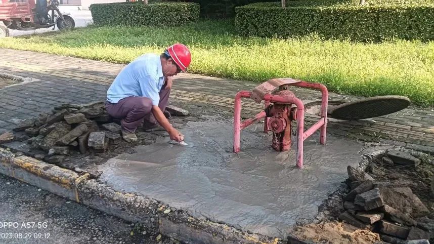 5.自来水公司管网所对消防队门口消防井进行抬升维护。