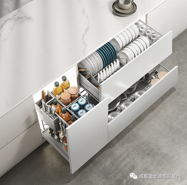 托底轨:也叫隐形轨,在外面是看不到导轨的,比较美观,承重能力也强于侧滑轨。骑马抽:直接安装在抽屉下边的,最大的优点是方便装和卸,每个部位有卡扣连接,拆卸时按动相对应的卡扣即可。