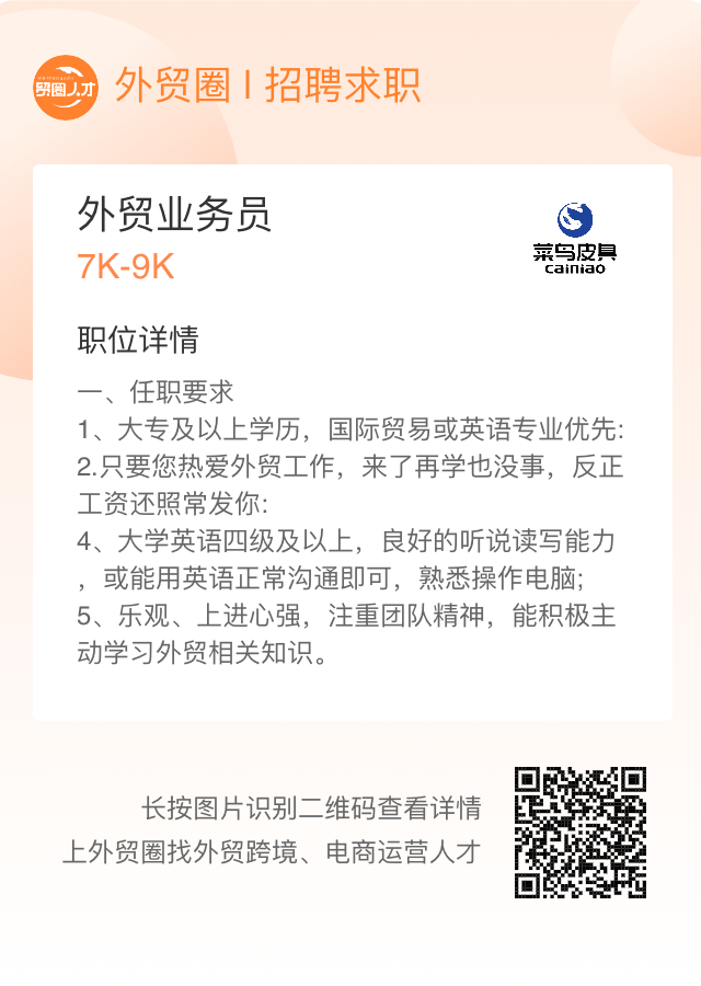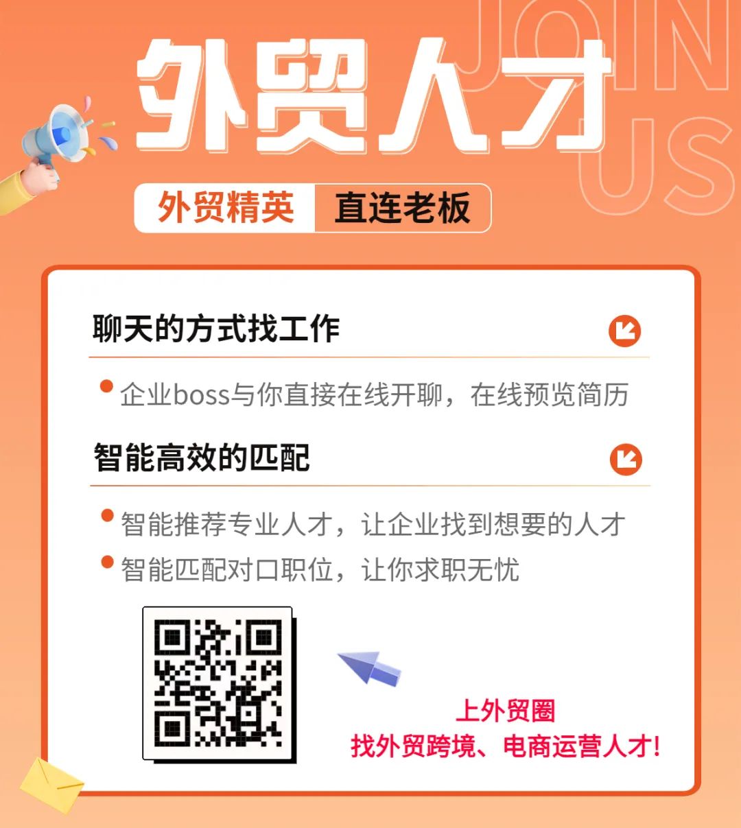 扫码加入社群后联系群主在外贸圈招聘求职平台发布信息!