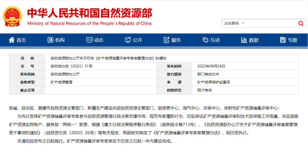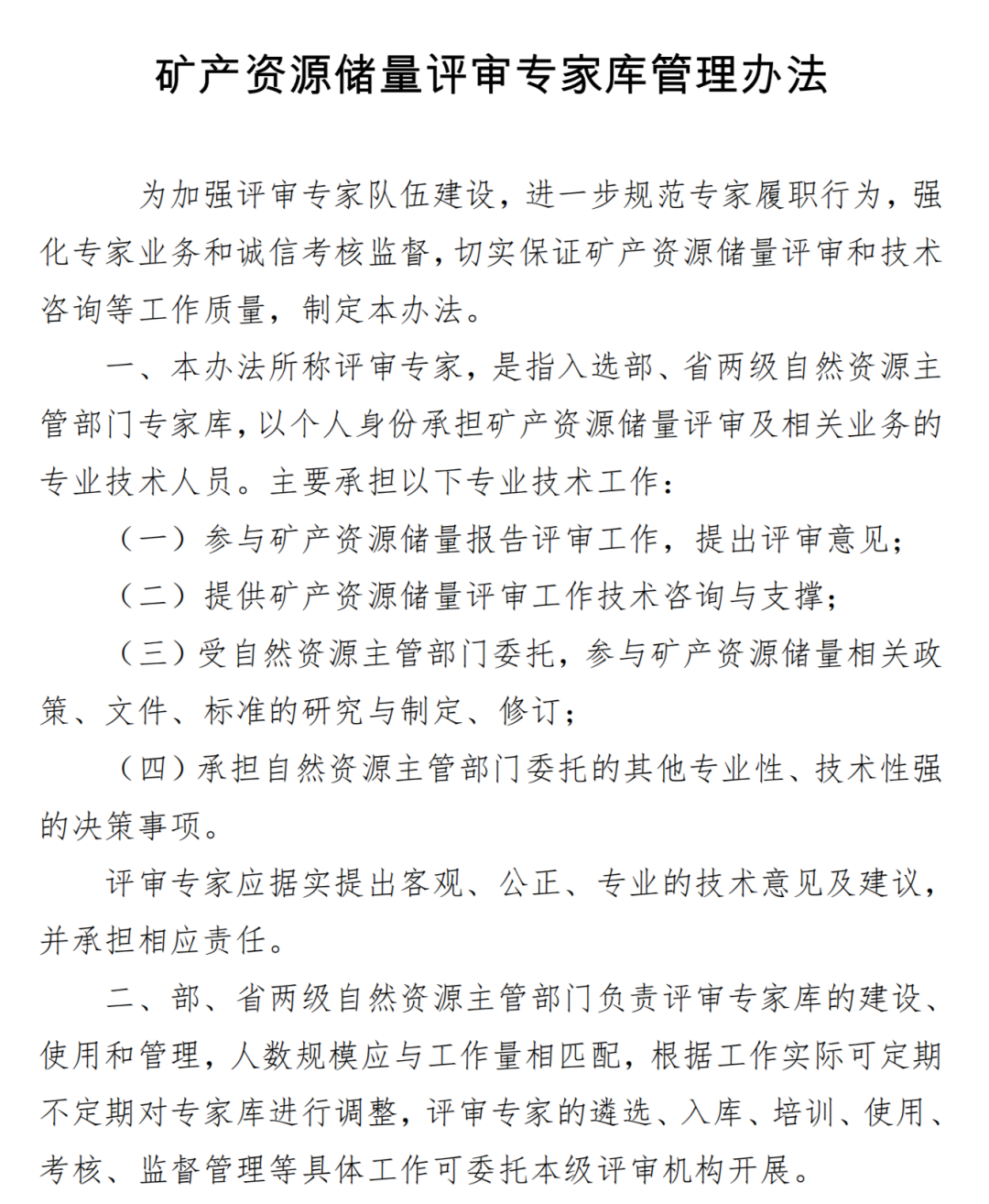 为充分发挥矿产资源储量评审专家参与自然资源管理行政决策支撑作用,规范专家履职行为,切实保障矿产资源储量和技术咨询等工作质量,夯实国家矿产资源实物账户,服务部“两统一”职责➤