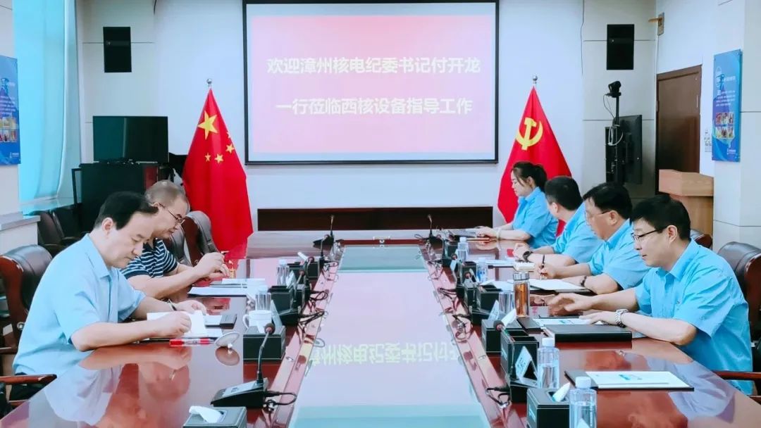 近日,中核国电漳州能源有限公司(以下简称漳州能源)纪委书记付开龙一行到西核设备开展调研交流。西核设备党委书记、董事长孙治国陪同调研。