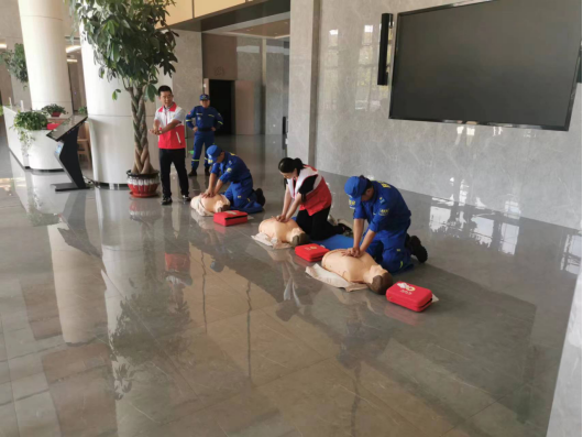 山邻物业公司联合区红十字会为员工进行急救及心率复苏知识培训,提升员工应急救援能力。