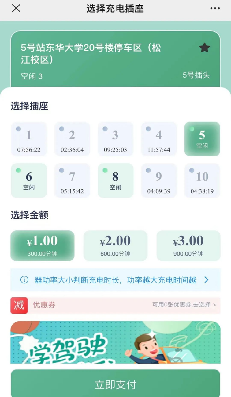 选择“无人车送货上门”服务,预约好无人车上门时间段,选定宿舍楼号,并支付送货费(单件快递2.5元,淘宝、天猫快递免费送货)