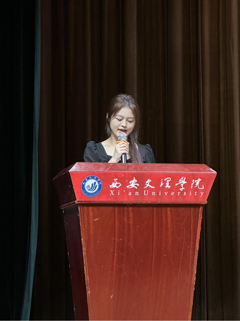 其次,由在校生代表、光电信息科学与工程专业2101班吴轶卓同学进行发言。她回忆三年前,自己也和各位新生一样怀着期待和忐忑迈入大学校园,在老师的帮助下,树立了良好的奋斗目标,度过了收获满满的两年。希望同学们也能够继续砥砺前行,不断朝着自己的人生规划拼搏奋进,为机材学院增添新的力量。