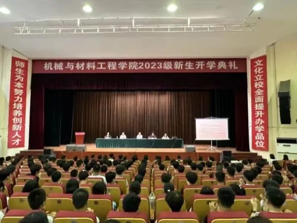 8月29日下午,西安文理学院机械与材料工程学院2023级新生开学典礼在学校大礼堂举行。西安文理学院机械与材料工程学院领导班子全体成员,各专业系主任,党政办以及学工全体成员部,2023级全体新生参加开学典礼。典礼由院党总支书记武文斌主持。