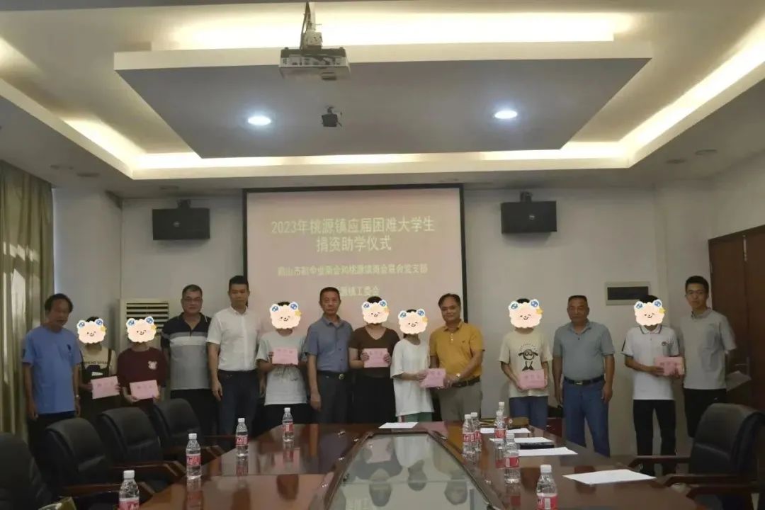 8月28日下午,鹤山市制伞业商会和桃源镇商会联合党支部在桃源镇镇政府举行“逐光而行 点亮未来”助学款发放仪式,六位贫困优秀学生获得资助,继续完成学业。桃源镇镇长黄国彬、桃源镇人大主席刘星宇、商会联合党支部书记温兆轩、桃源镇商会会长李兆荣、鹤山市工商联、鹤山市总工会相关负责人以及参与资助的企业家代表和受助学生参加了活动。
