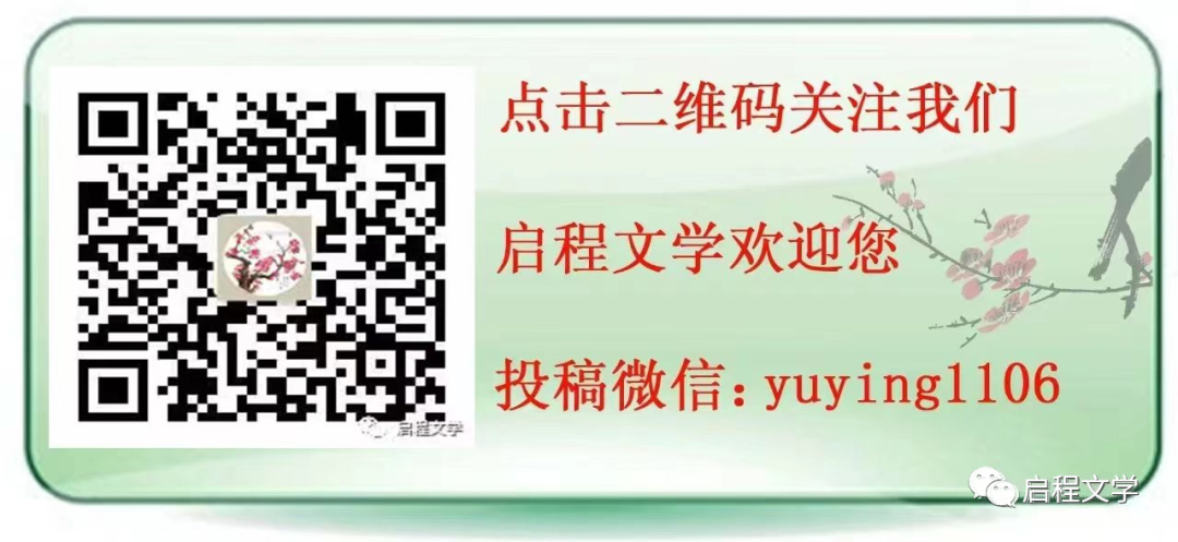 期待阅读与分享,欢迎点击“在看”留言点评!点击下面图标,识别二维码关注“启程文学”平台,可阅读精选文章,谢谢您的关注与支持!
