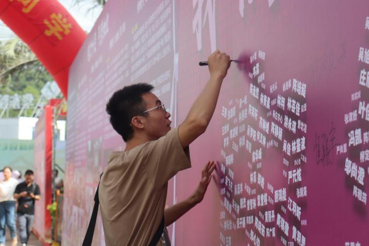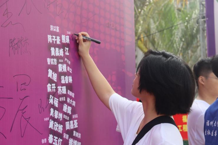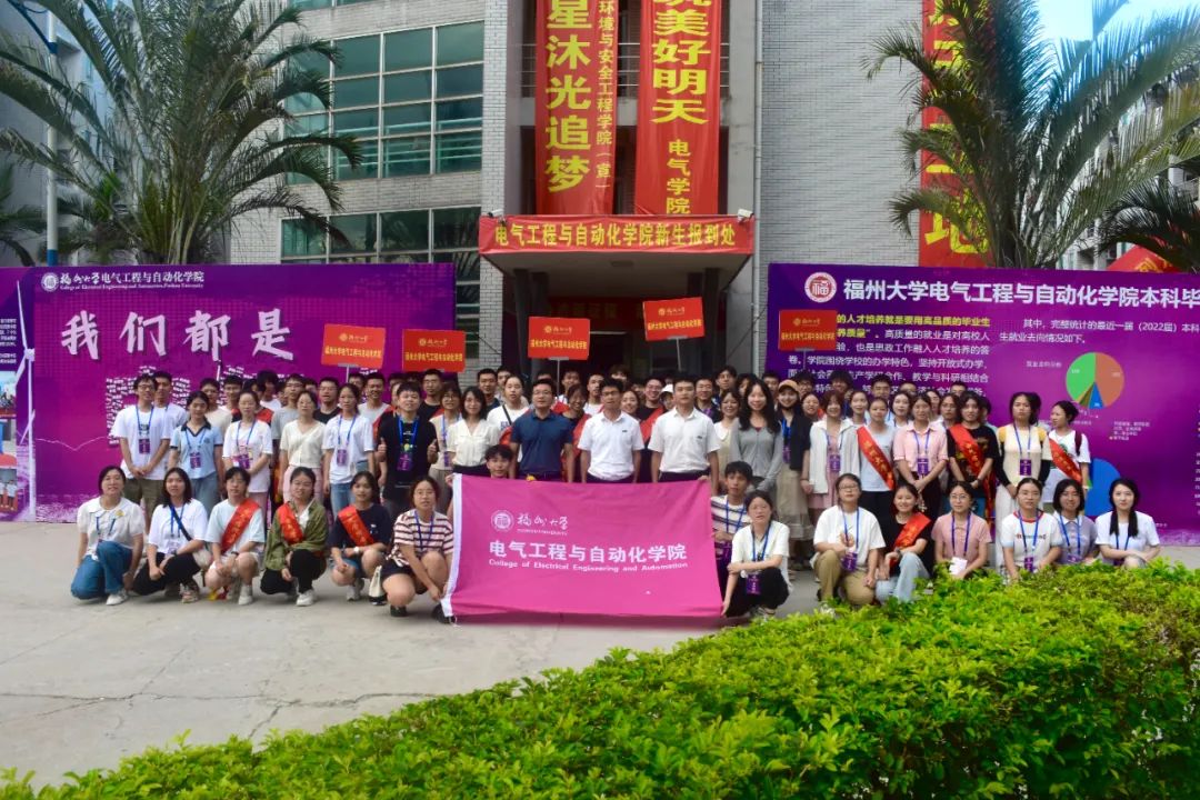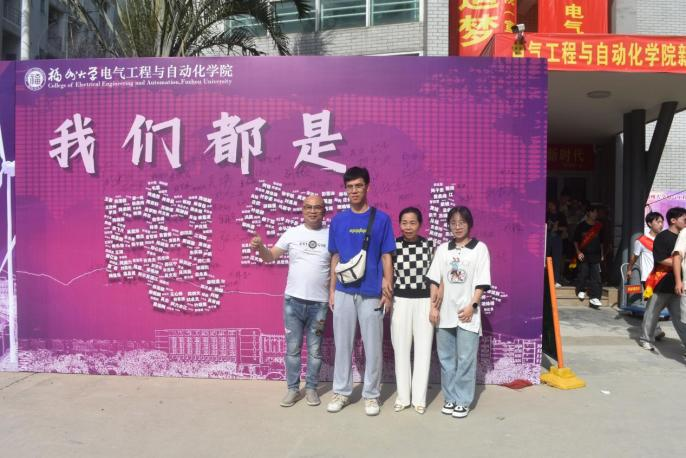 暖阳下,展板上“我们都是电气人”的大字表白格外醒目。其中,“电气人”三个大字由392名本科生新生和317名研究生新生的名字共同组成,寓意2023级新生来自五湖四海,相聚在福大电气,紧密团结,融入电气学院大家庭,开启崭新的人生篇章,未来成为一名顶天立地的“电气人”。展板前,萌新和家长们纷纷驻足找寻自己的“电气符号”,提笔签名,写下自己关于大学的梦想与憧憬,并一起打卡留念合影。
