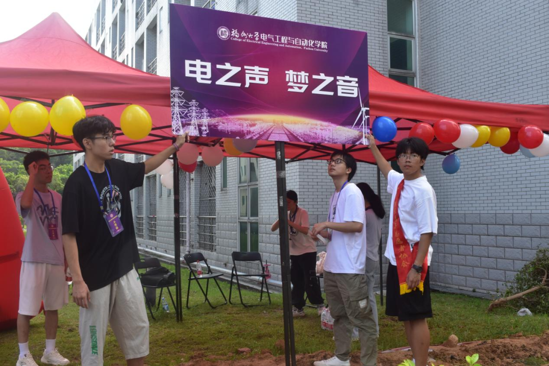 与此同时,“电之声·梦之音”迎新歌会拉开序幕,同学们在草坪上倾情演绎,嘹亮动听的歌声响彻迎新点,俨然成为迎新日里一道靓丽的风景。动人心弦的歌声尽显电气人的蓬勃朝气,辅导员老师的加入,更是将全场气氛推进高潮。“天青色等烟雨,而我在等你”,这场《遇见》超越《光年之外》《那些你很冒险的梦》在这里有广阔的舞台,《我们》共同奔赴下一场《山海》,收获属于自己的《稻香》......一首首歌曲唱响青春,饱含对电气新人的真诚祝福,唱出了对未来的美好展望。