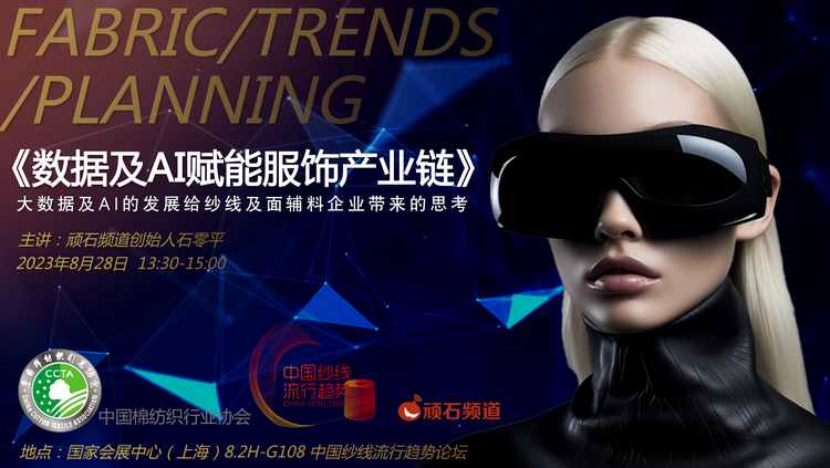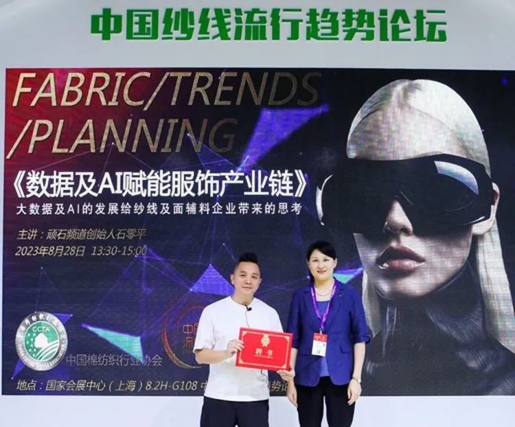 上海,2023年8月28日 ,中国棉纺织行业协会在上海国家会展中心成功主办了“中国纱线流行趋势论坛”。本次论坛的亮点之一为由石零平老师主持的专场演讲,主题为《数据及AI赋能服饰产业链》。这场演讲旨在深入探讨数据和人工智能在时尚产业中的关键作用。