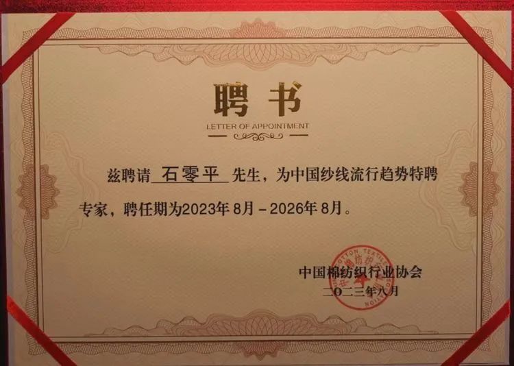 在这次论坛上,顽石频道创始人石零平先生荣任中国棉纺织行业协会,中国纱线流行趋势特邀专家,未来将为中国棉纺织行业的发展贡献自己的能量和经验。